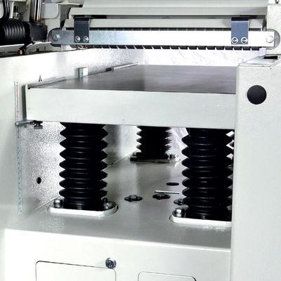 Leichtgängiger und hochpräziser Formatschiebeschlitten aus eloxiertem Aluminium mit bewährtem und dauerhaft leichtgängigem Kugelkontaktsystem auf auf gehärteten und eingebördelten Stahlführungsschienen, 10 Jahre Garantie auf Verschleiß der Führungsbahnen