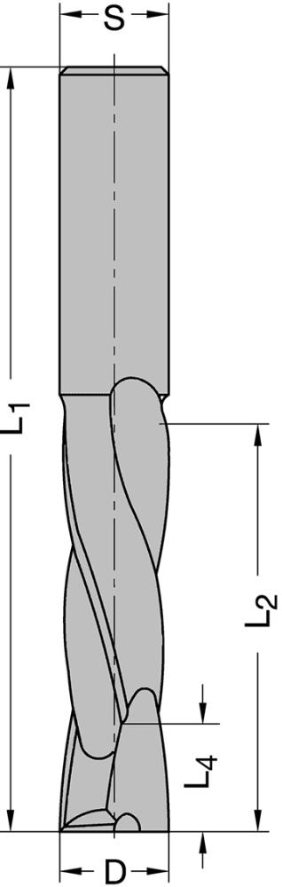 •Je zwei/drei versetzt angeordnete Vollhartmetall-Schneiden in Wendelform