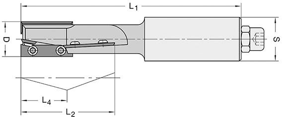 •Je zwei versetzt angeordnete HW-Wechselmesser mit nach innen ziehendem Achswinkel und HW-bestückter Einbohrschneide