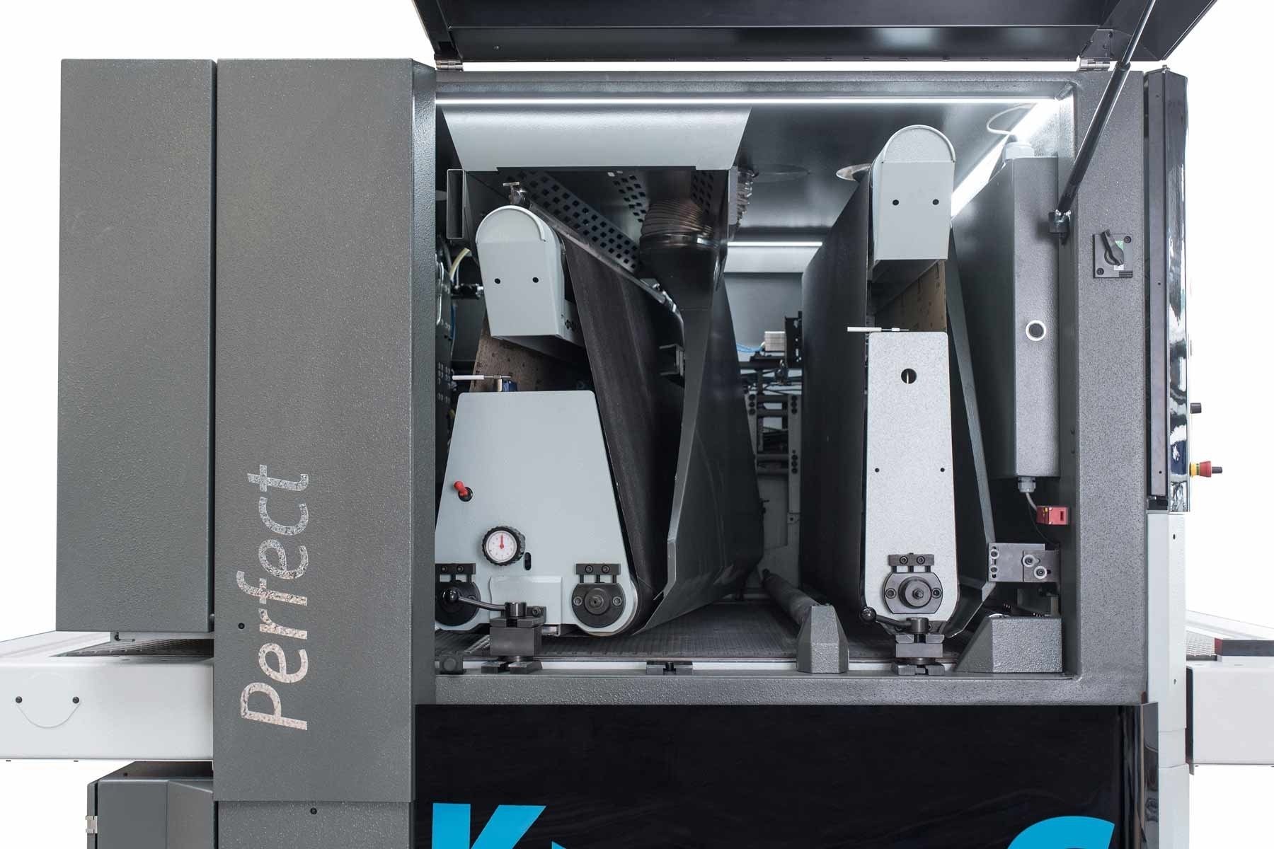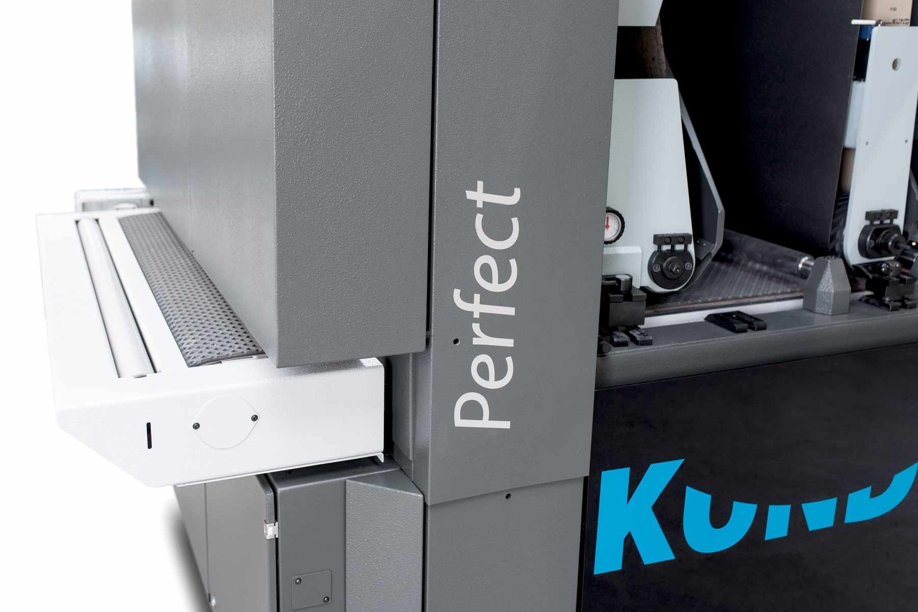 Mit den Breitbandschleifmaschinen der Modellreihe Perfect ist Kündig dem steten Wandel im gehobenen Innenausbau zwei Schritte voraus. Hinter dem modernen Design verbirgt sich eine Vielzahl schleiftechnischer Innovationen, welche im Zusammenspiel auch höchste Anforderungen an die Oberflächengüte übertreffen. Mit der von Grund auf neu entwickelten Bedieneinheit wird Schleifen noch einfacher und intuitiver. Alle unsere Modelle eignen sich zur Integration in jedes relevante Leitsystem und sind damit vollumfänglich Industrie 4.0 fähig. Selbstverständlich ist auch die Perfect komplett modular und kann mit einer großen Auswahl an Aggregaten und Optionen ausgestattet werden.