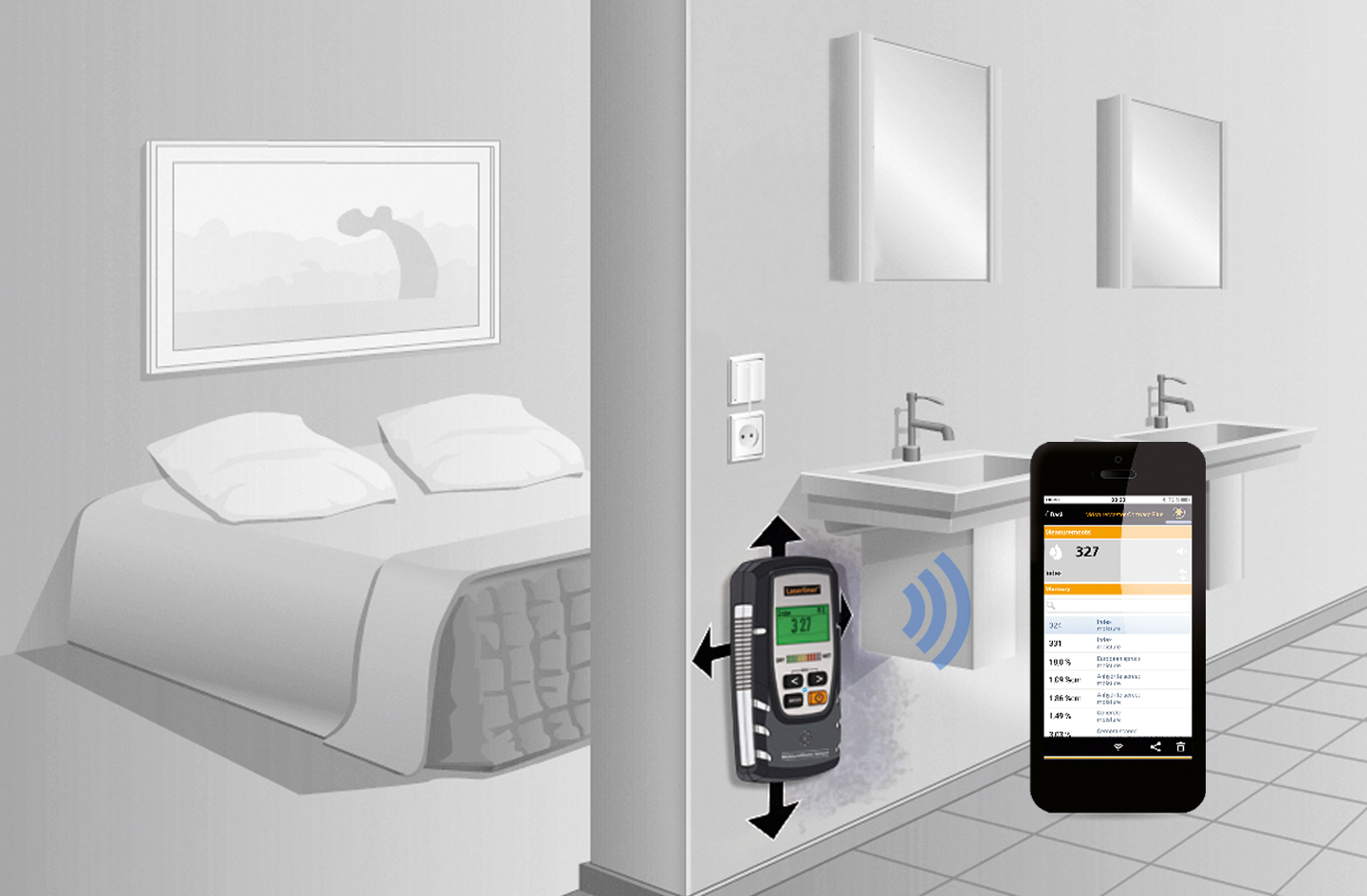 Der MoistureMaster Compact Plus ermöglicht die zerstörungsfreie Ermittlung der Materialfeuchte. Das Messgerät warnt optisch und akustisch bei nassem Material. Es ist einfach zu bedienen und die Messdaten können über die Digital Connection-Schnittstelle auf ein Handy für die MeasureNote-App übertragen werden. Die große Auswahl an Materialkennlinien und Sprachen sorgt für vielfältige Einsatzmöglichkeiten.