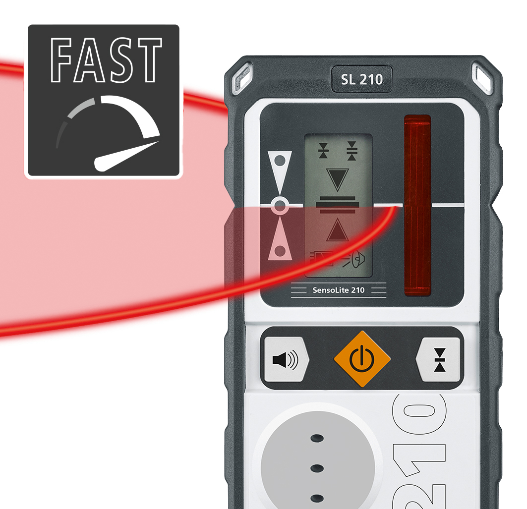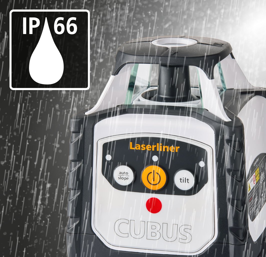 Der vollautomatische Rotationslaser mit großer Reichweite ist ideal für Aushub- und Ausschachtungsarbeiten. Das robuste Gerät ermöglicht ein genaues Nivellieren von Horizontalen und Vertikalen. Ein 90° Referenzstrahl dient dem Loten und Ausrichten von Trennwänden. Zu den verfügbaren Modi zählen der Punkt-, Scan-, Rotations- und Handempfängermodus. Neigungen lassen sich manuell anlegen. Die Kombination aus Leichtstativ, Laserempfänger und Messlatte ist optimal für das Festlegen und Arbeiten mit Referenzmaßen. Per Fernbedienung können alle Funktionen bis maximal 40 Metern komfortabel ferngesteuert werden. Bei einer Fremdeinwirkung erfolgt die automatische Abschaltung zur Verhinderung von Fehlmessungen. Durch paralleles Arbeiten und Laden des Akkus verliert der Anwender keine Zeit bei seiner Tätigkeit.