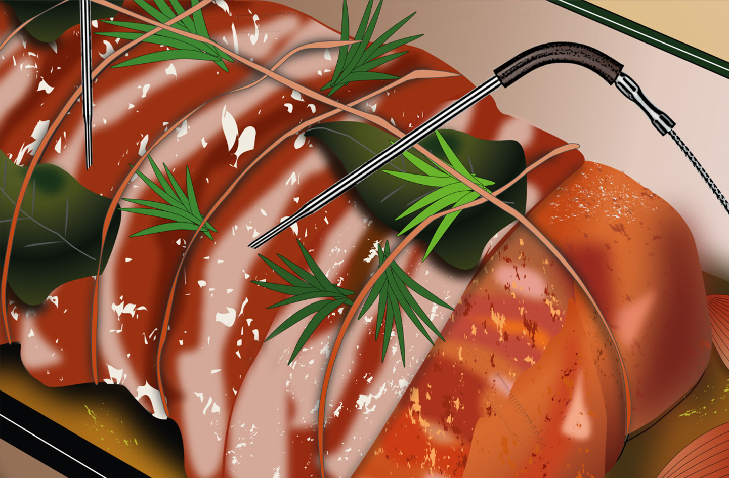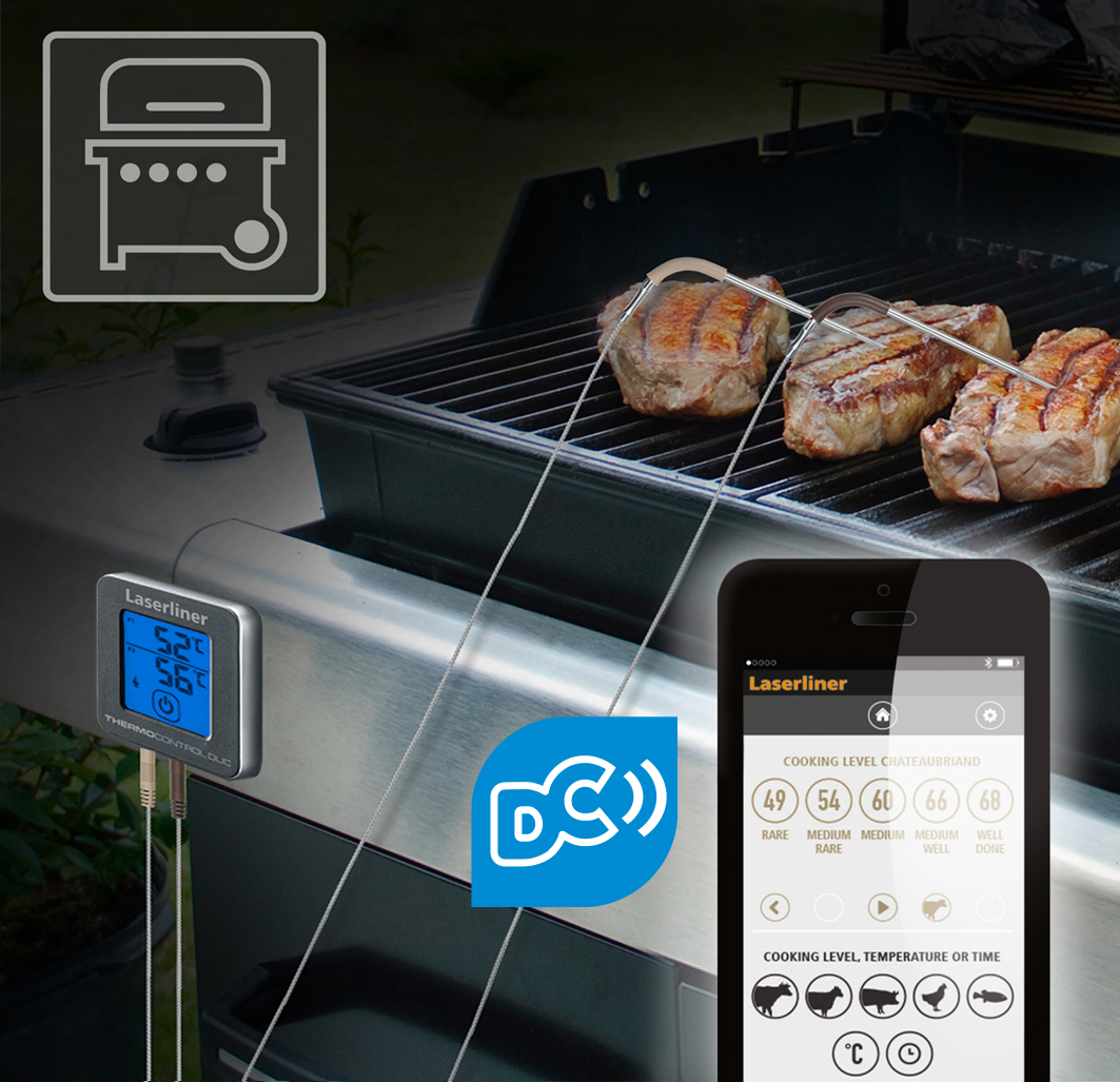 Digitales Thermometer zur Überwachung der Garstufe von Fleischgerichten mit ThermoControl-App über Digital Connection-Funktion