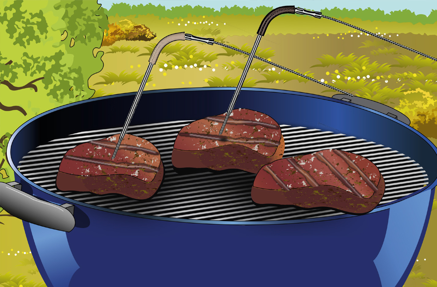 - Optische und akustische Signale der App schützen vor Verkohlen des Grillguts
