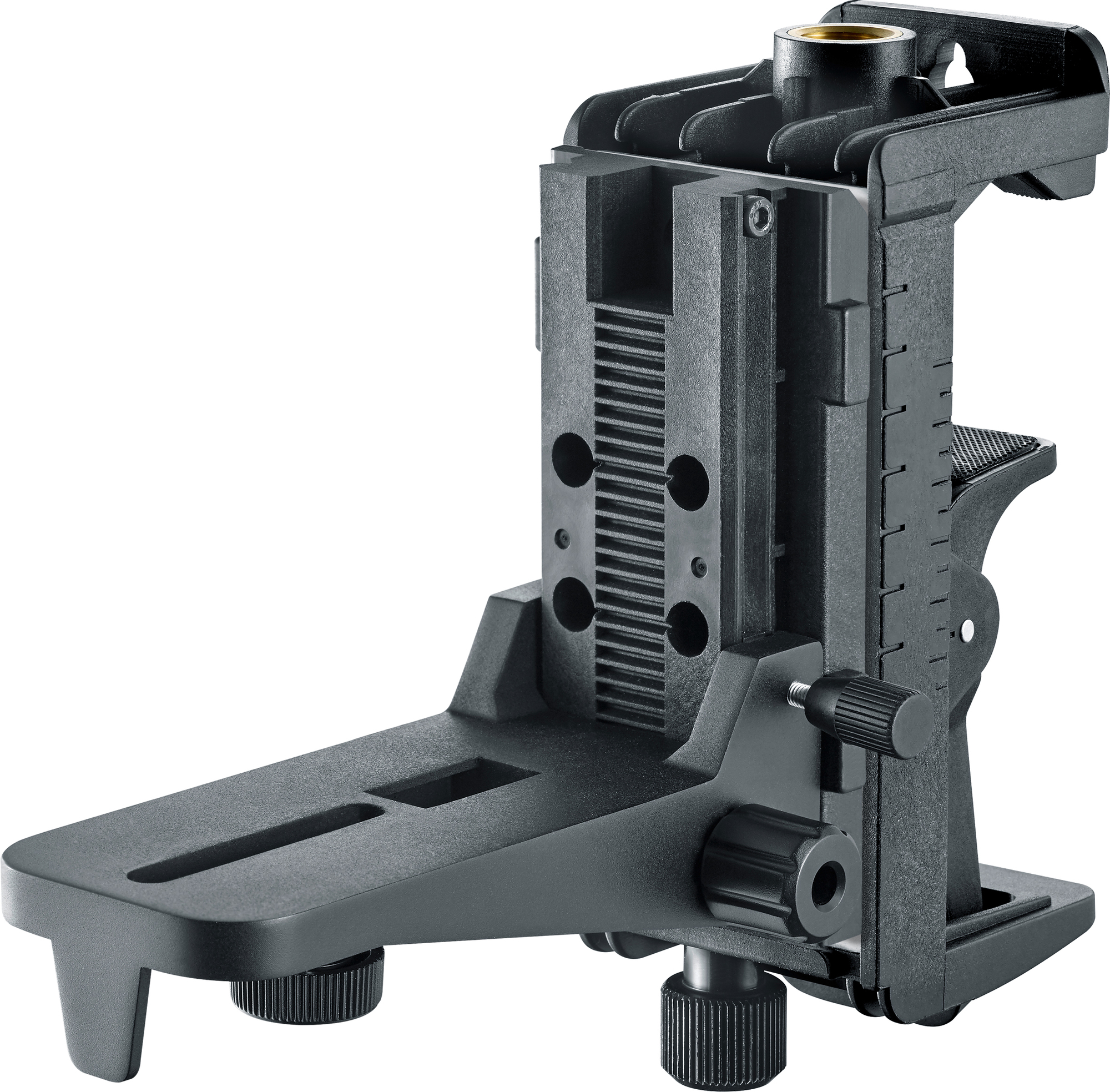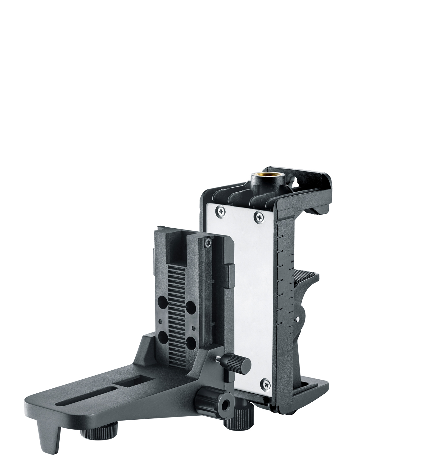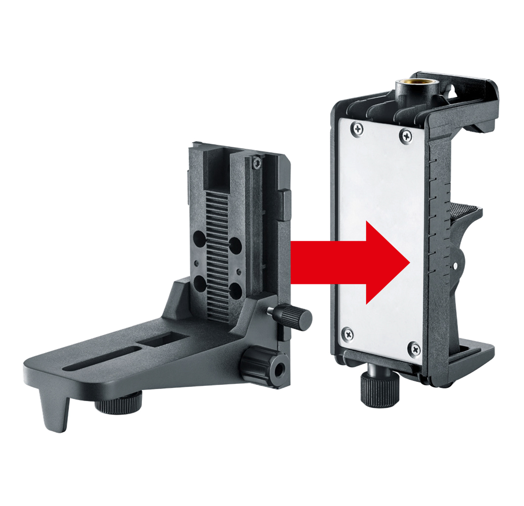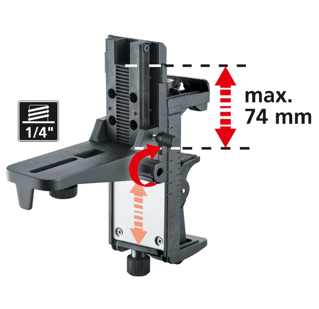 Die robuste, magnetische Klemm- und Wandhalterung ist für sämtliche Lasermessgeräte mit 1/4" Gewinde geeignet. Sie verfügt über Ösen zur direkten Befestigung an Wänden. Starke Haftmagnete an der Rückseite ermöglichen die Fixierung an metallischen Oberflächen. Per Klemmhalterung erfolgt die horizontale und vertikale Anbringung an Trockenbauprofilen. Durch das Justieren der Verstellschraube lässt sich die Öffnungsweite der Klemmhalterung steuern.