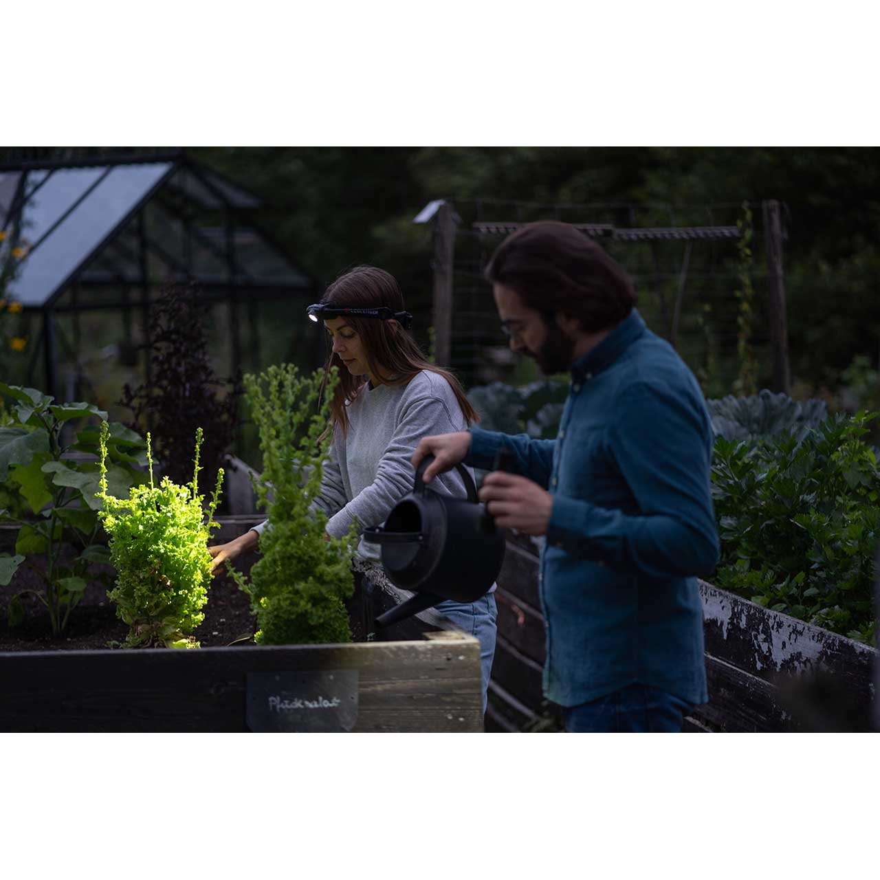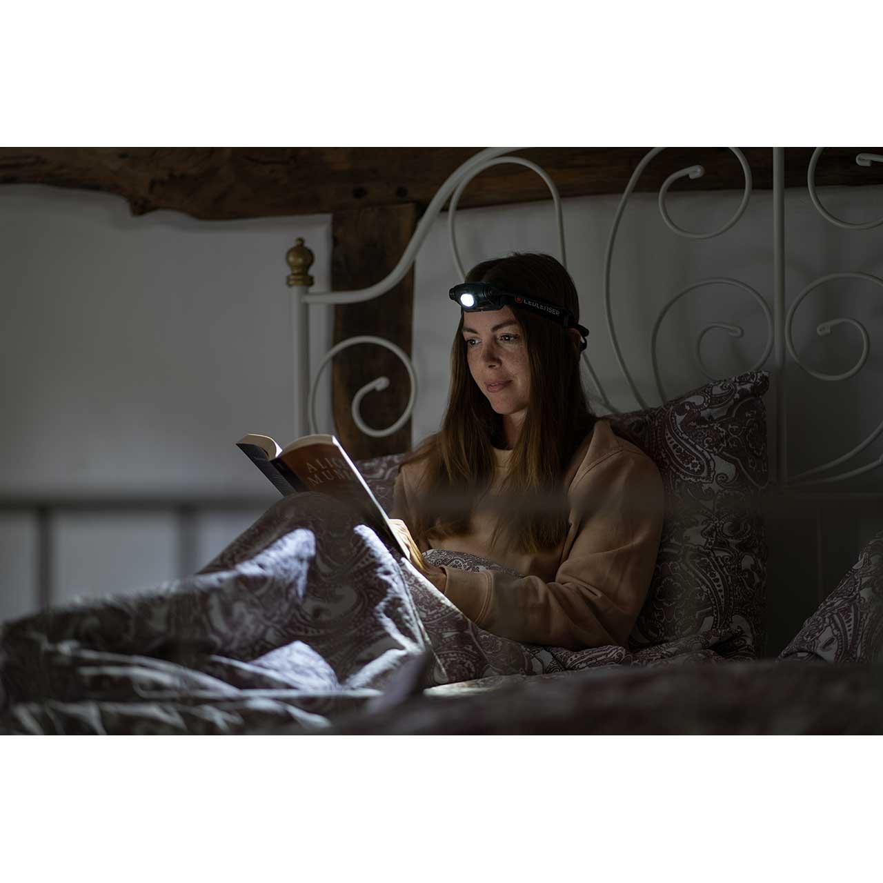 Dank Drehschalter am Lampenkopf ist die Stirnlampe intuitiv bedienbar. Das elastische Stirnband ist abnehmbar und waschbar