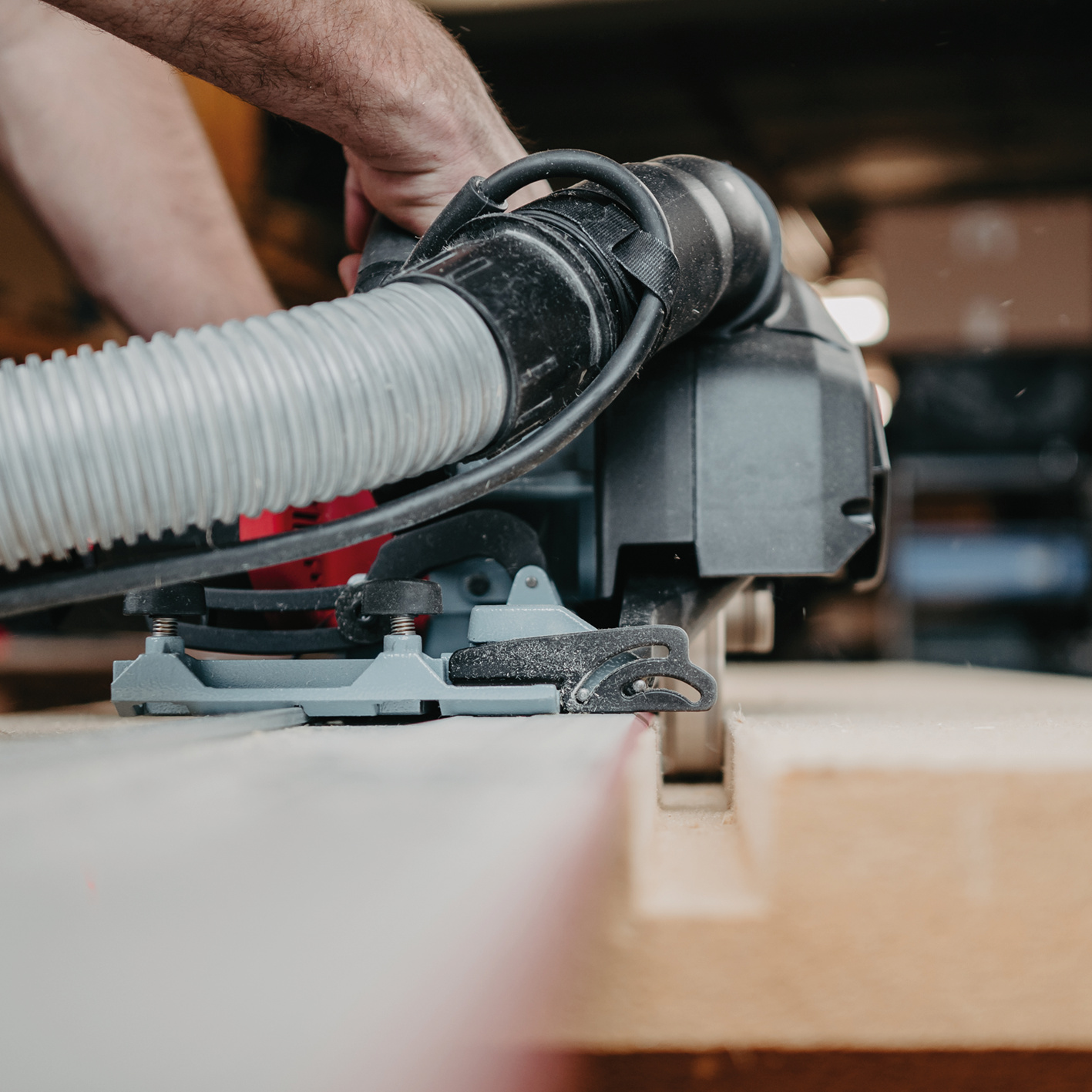 Die Nutfräse NFU 50 ist flexibel einsetzbar und ein Allrounder für unterschiedlichste Fräsungen im Holzbau. Umfangreiches Sonderzubehör erweitert dabei die Möglichkeiten im täglichen Job. Die Bauweise der NFU 50 besticht durch extrem robuste, hochwertige und präzise gefertigte Bauteile, wie z. B. das leichte MagnesiumDruckgussgehäuse oder die stoßfesten, glasfaserverstärkten Kunststoffteile. Zudem helfen Dir raffinierte Detaillösungen im harten Arbeitseinsatz.