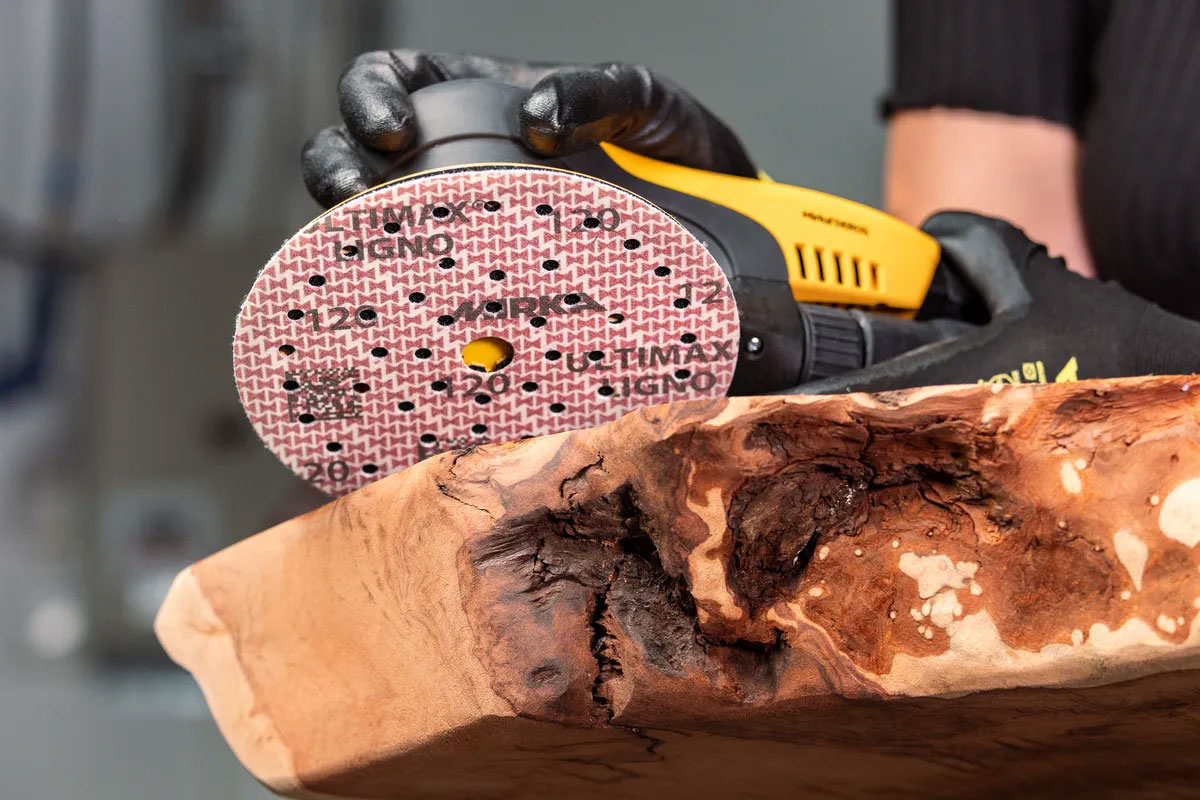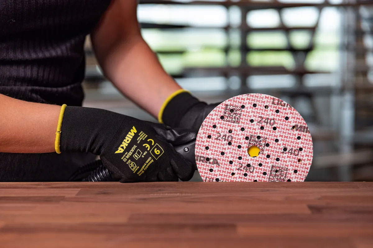 Ultimax Ligno ist speziell für das Schleifen von Holz entwickelt. Dank des speziellen Sanduhr-Musters bietet es einen schnellen und gleichmäßigen Abtrag sowie eine lange Standzeit mit guter Resistenz gegen Zusetzen. Das Papier ist mit Latex imprägniert, was Flexibilität und Widerstandsfähigkeit gegen Kantenschäden gewährleistet, und verfügt über das Mirka Multifit-Lochmuster. Die Staubkanäle führen zum Absaugloch und halten den Staub in Schach, sodass die Schleifkörner weiterhin abtragen können. Die Luftzirkulation unter dem Schleifmaterial reduziert die Hitze beim Schleifen, was besonders beim Schleifen von Oberflächen wichtig ist. Selbst größere Holzstaubpartikel sind kein Problem dank verschieden breiter Staubkanäle. Die Exposition gegenüber Holzstaub ist ein erhebliches Gesundheitsrisiko am Arbeitsplatz, daher wurde Ultimax Ligno von Anfang an mit Mirkas staubfreier Schleiftechnologie entwickelt.