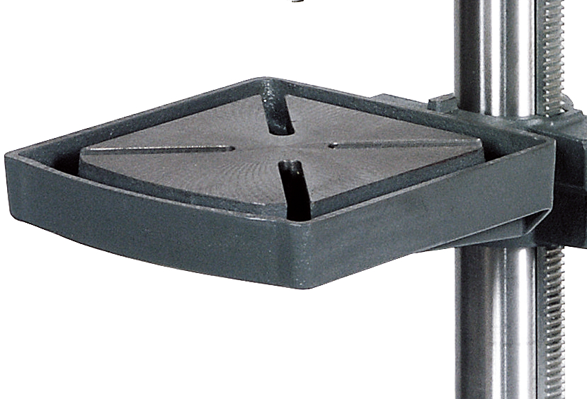 - Präzise gearbeiteter, stabiler Bohrtisch mit diagonal verlaufenden T–Nuten und umlaufender Kühlwasserrinne
