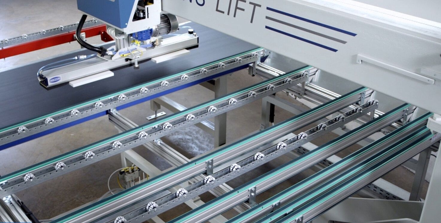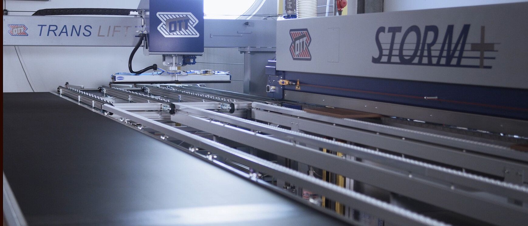 TransLift ist die perfekte Ergänzung zu Ihrer neuen OTT-Kantenanleimmaschine: Die Teile werden zum Bediener zurückgefördert, bei Bedarf können Sie vom Vakuumheber um +/- 90° oder 180° gedreht werden. Auch die Verarbeitung von grösseren Teilen ist kein Problem. Werkstücke bis zu 1300 x 3000 mm werden von dem System gedreht / rückgefördert. Für Platten, die diesem Spektrum nicht entsprechen, gibt es eine Aushubvorrichtung und Allseitenrollen am Maschinenauslauf, zur einfachen Manipulation und manuellen Transport an den Maschineneinlauf.