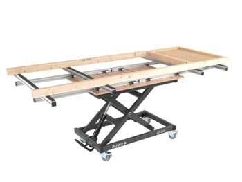 Vielfältig im Einsatz und flexibel beim Arbeiten: Das sind die Montagetische für die Holz- und Kunststoffverarbeitung. Mit dem bis zu 300 kg belastbaren Hubtischmodell kann die Arbeitsfläche zwischen 45 und 105 cm stufenlos verstellt werden. Die Arbeitsfläche besteht aus einer Buche Multiplex Platte. Ihre hochwertige Lackierung macht sie kratzfest und unempfindlich gegen Leim und Lösungsmittel. Eingefräset Nuten und ein seitlich umlaufender Rahmen ermöglichen den Einsatz der Spann- und Anschlagtechnik von RUWI. So wird der Nuttisch zu einer multifunktional einsetzbaren und mobilen Werkbank. Zusätzlich bringt eine hochwertige und leichtgängige, Hydraulik Fußpumpe den Arbeitstisch immer auf die richtige ergonomische Höhe. Vier Vollgummi-Lenkrollen mit Feststellern machen den Tisch äußerst wendig und verhelfen ihm beispielsweise als Montagetisch, Ablagehilfe und Stapelwagen zu großer Mobilität.