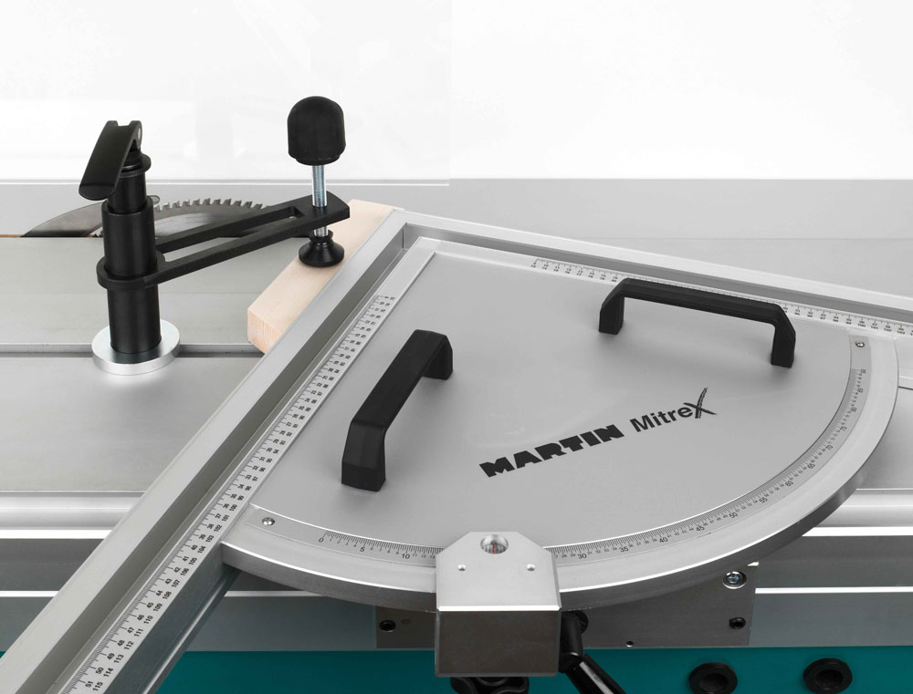 Die Spannarmlänge und der Nutenstein am Schwenkspanner sind ausgelegt für Martin Maschinen. Diverse Hilfsanschläge lassen sich passend zu den Werkstücken, schnell, sicher und einfach platzieren bzw. fixieren.