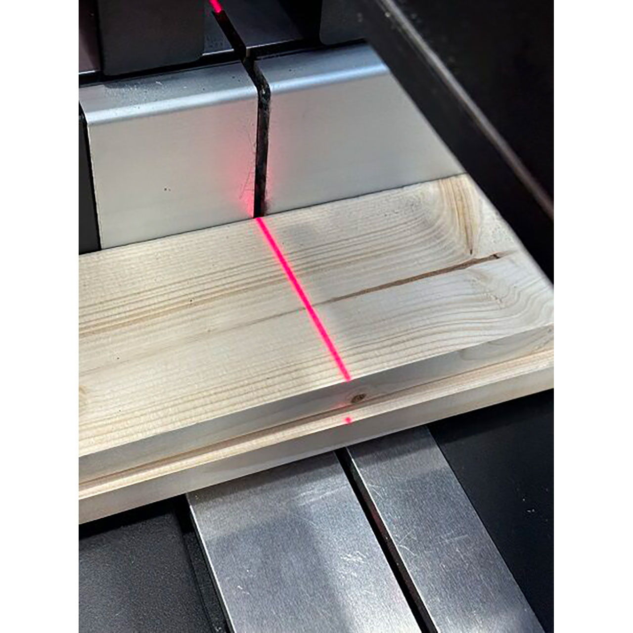 - 1 Stück pneumatisch wegschwenkbarer Anschlag mit 200 mm Länge und Bedienschalter am Sägegestell