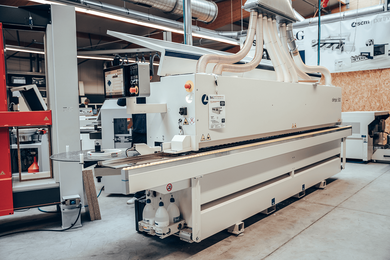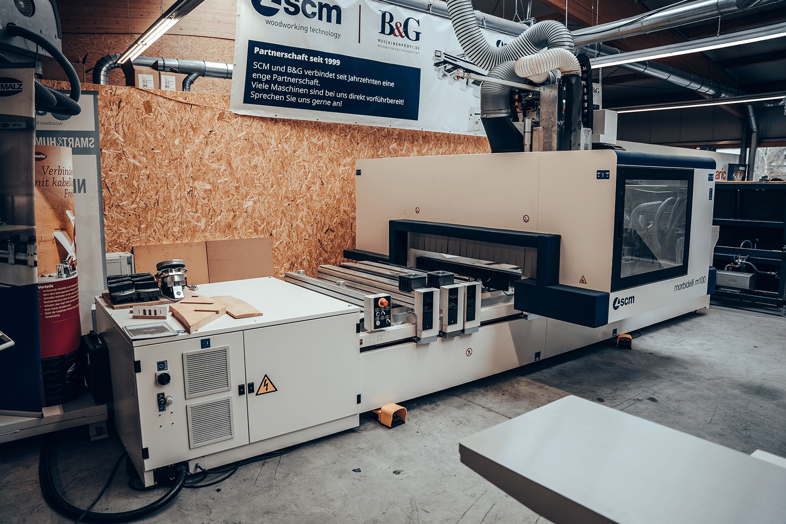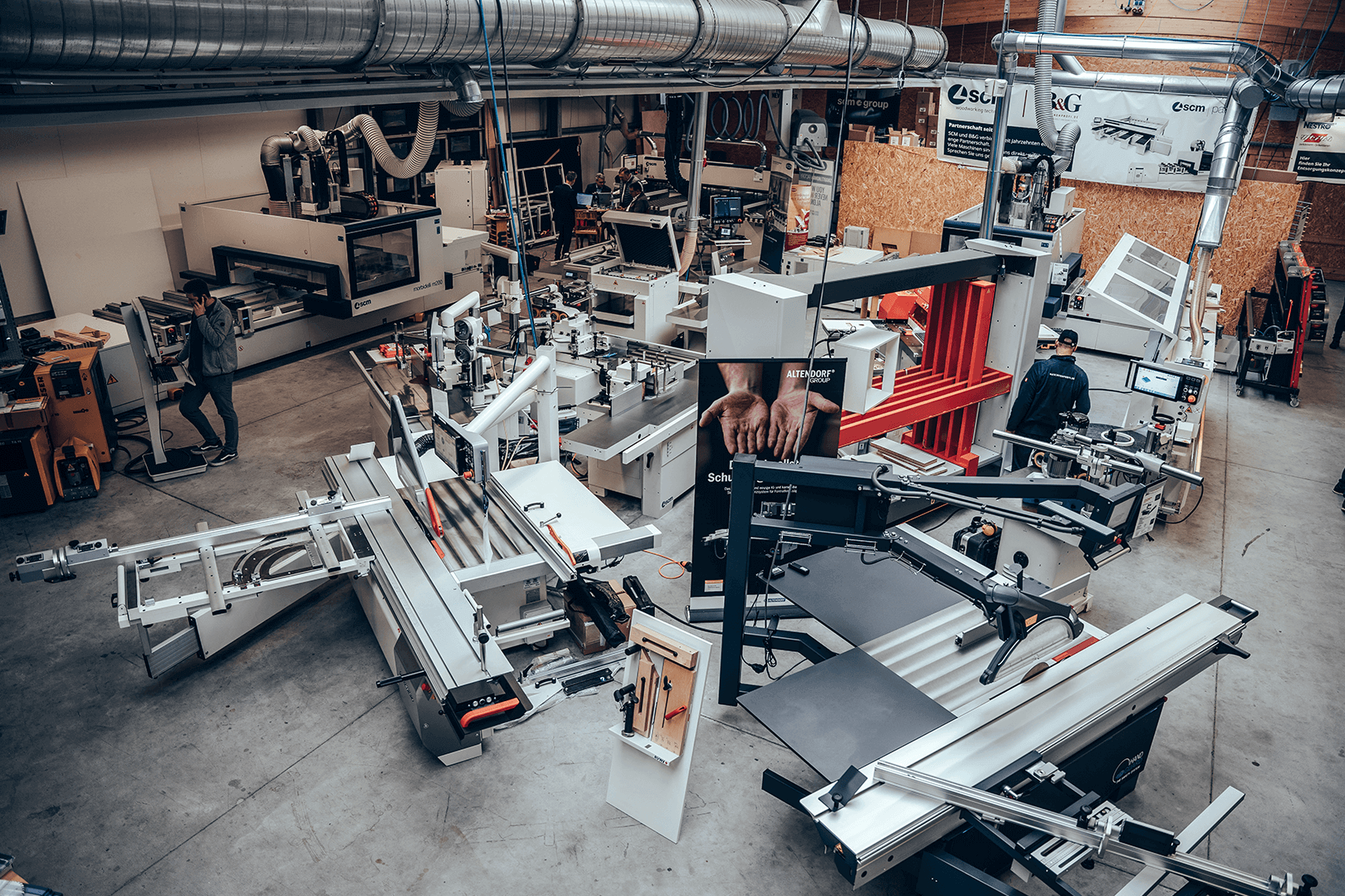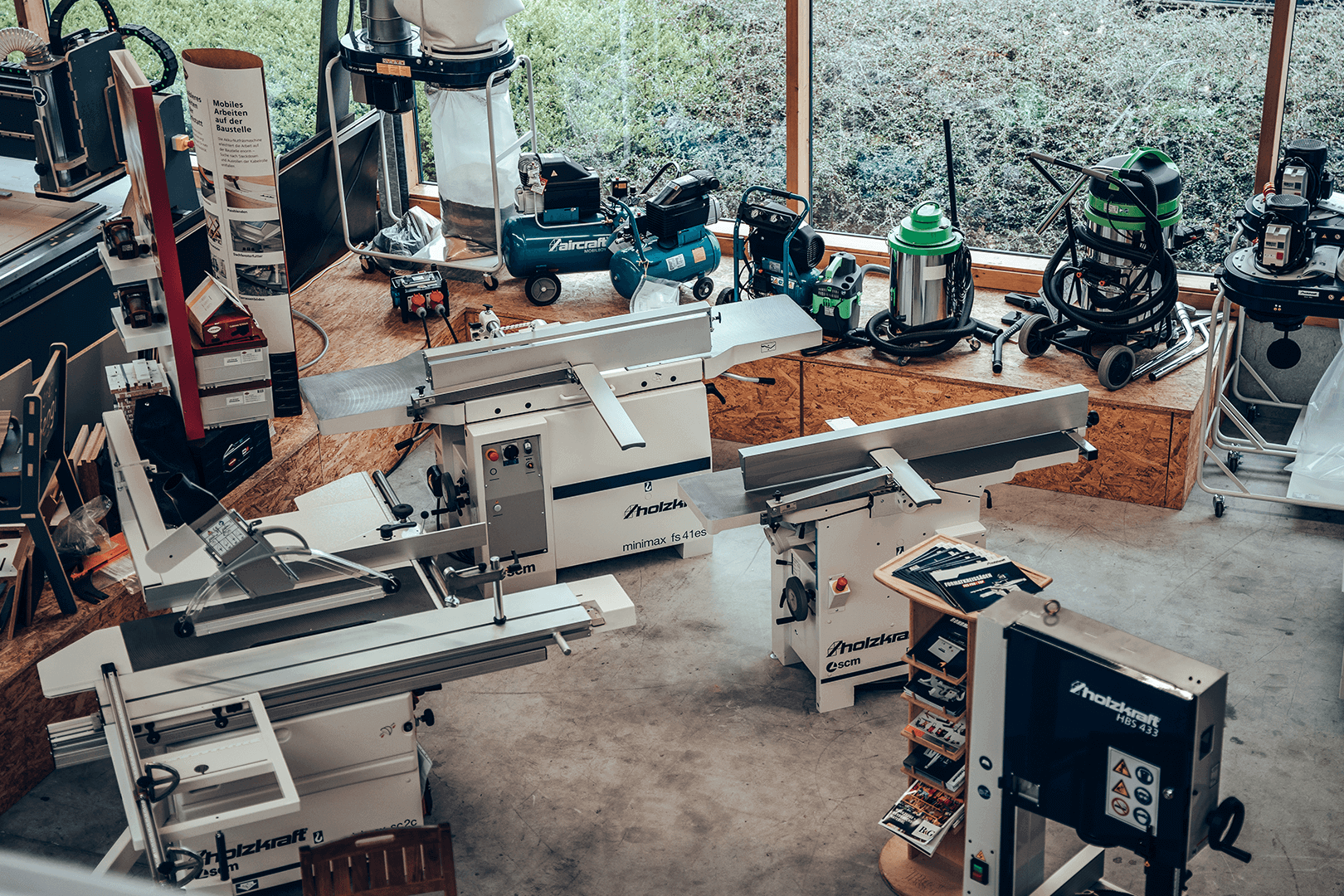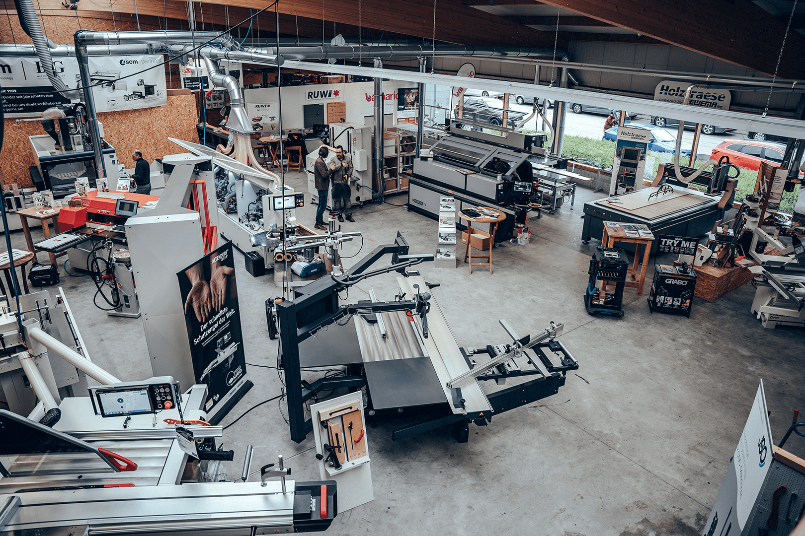 Hier erwarten Sie vorführbereite Maschinen, Absaugungsanlagen und Kompressoren