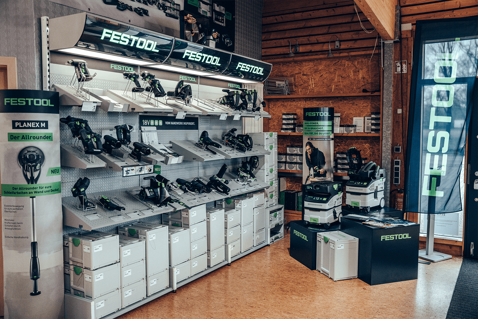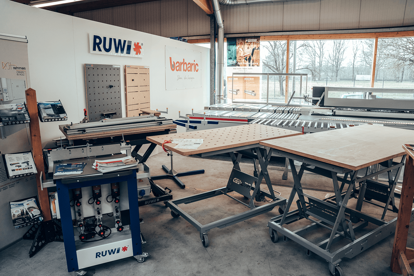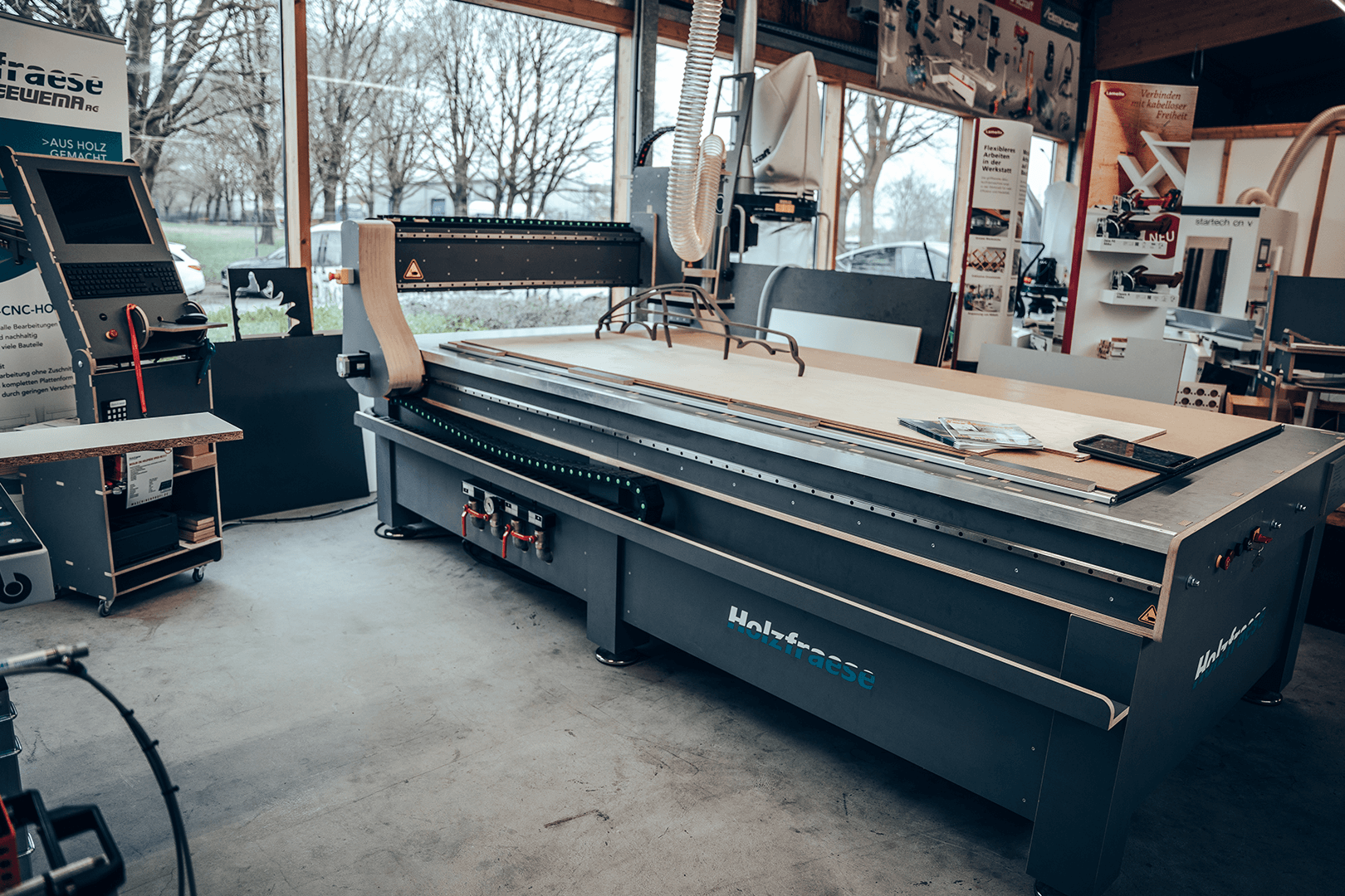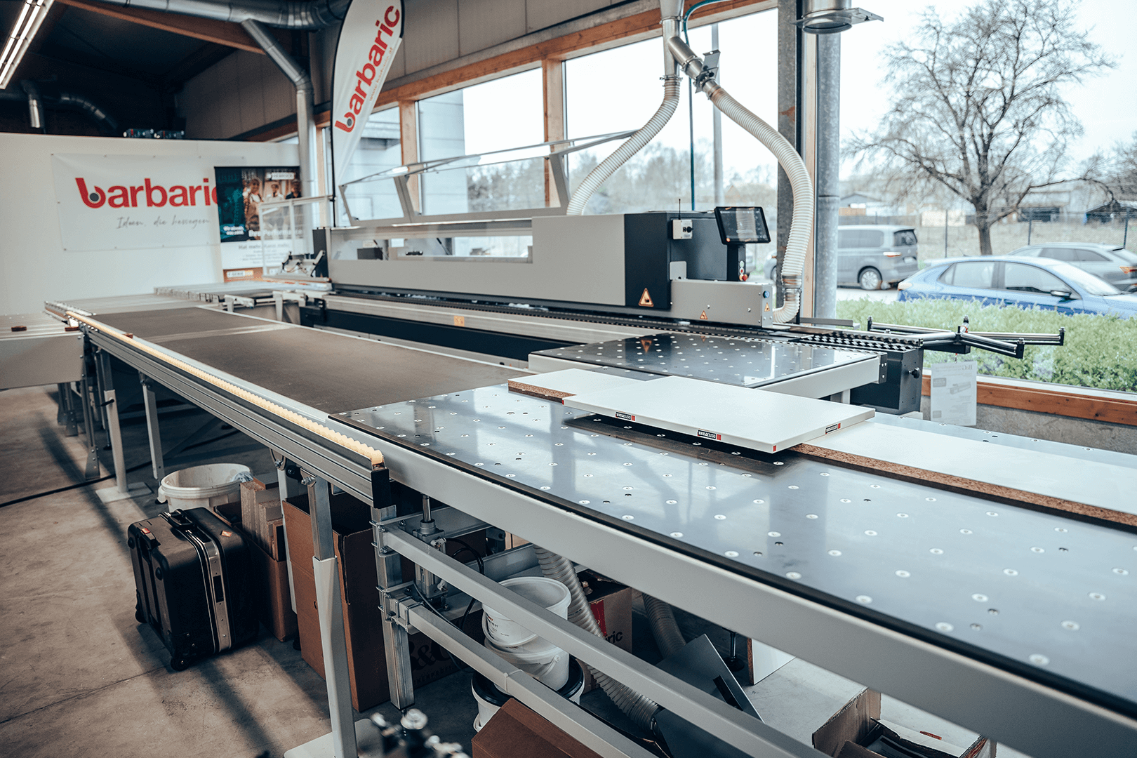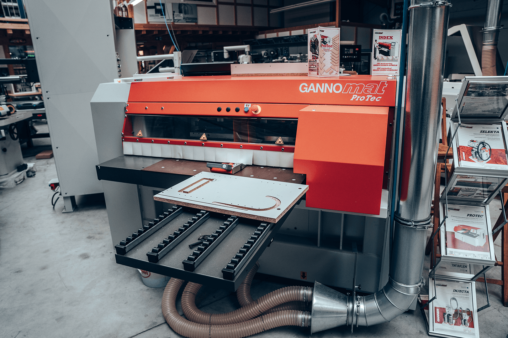 Hier erwarten Sie vorführbereite Maschinen, Absaugungsanlagen und Kompressoren