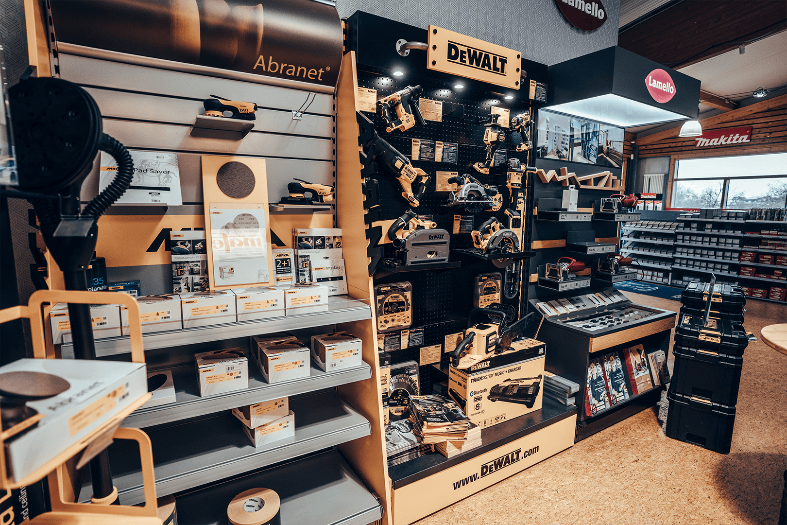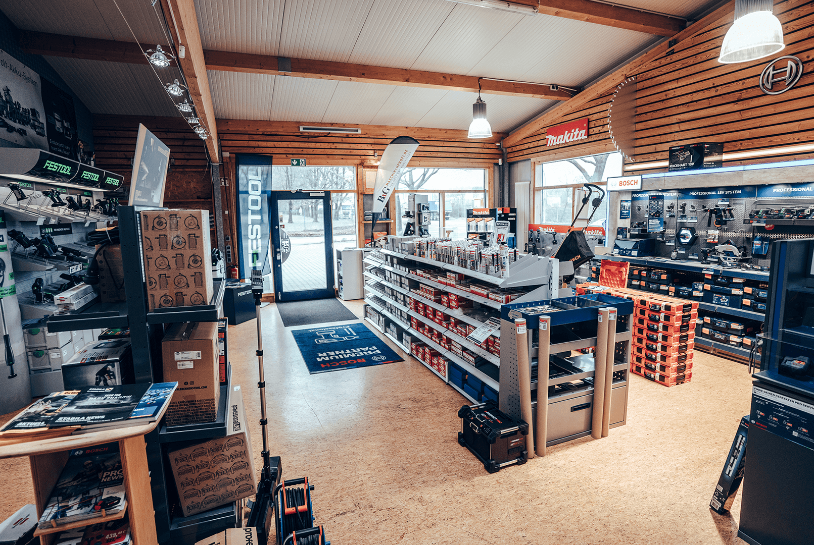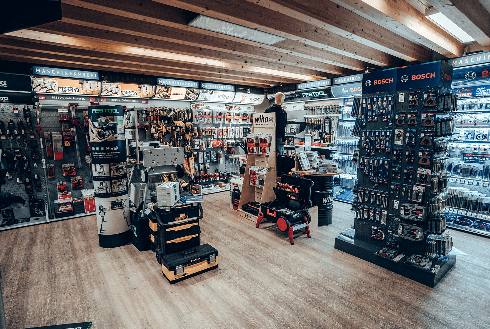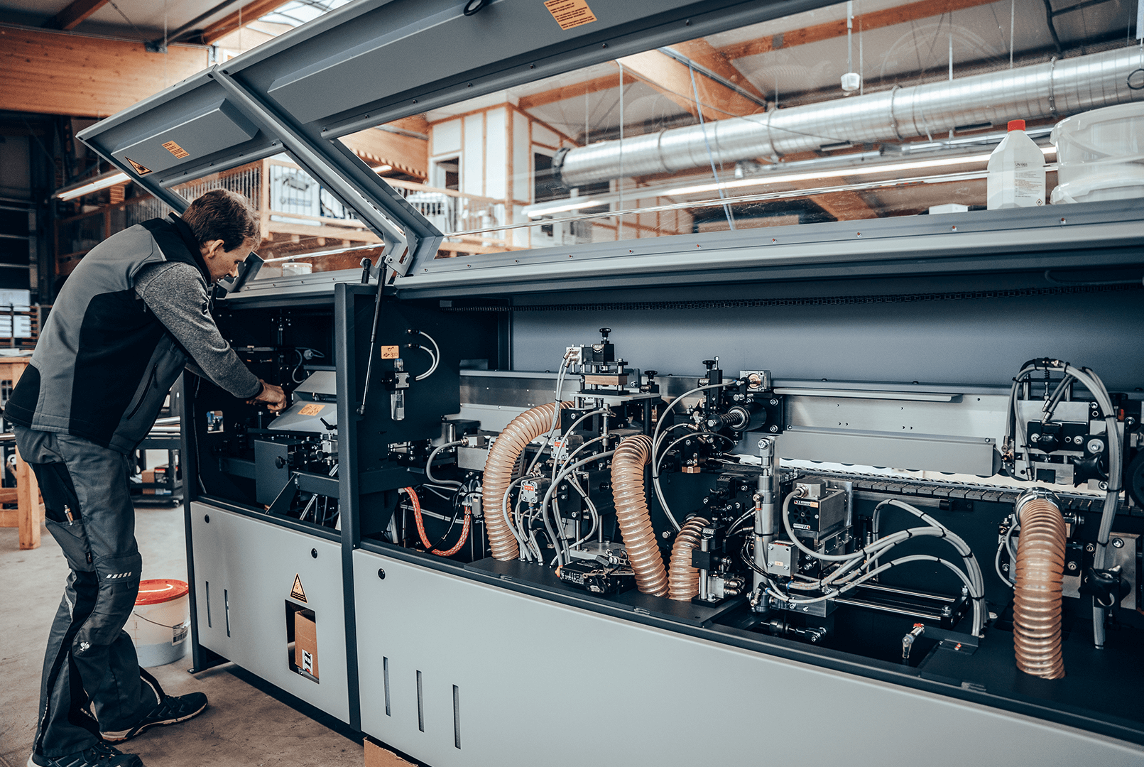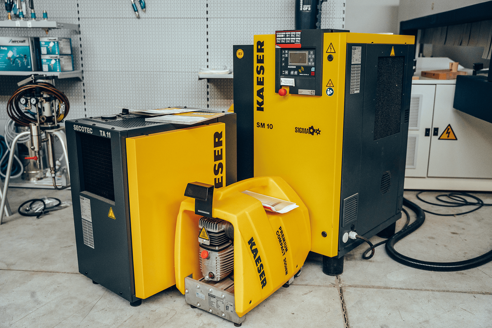 Hier erwarten Sie vorführbereite Maschinen, Absaugungsanlagen und Kompressoren